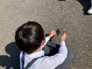 夢中になって黒い紙に穴をたくさん開け、日光の威力に驚いていました。