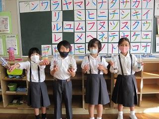 生活科で、秋ならではのどんぐり、落ち葉、木の実などを拾ってきました。