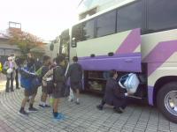 朝早く学校で出発式をして、バスに乗って出発しました。