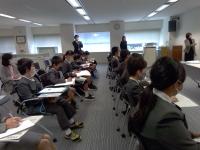 裁判の仕組みについてのお話を聞き、法廷の見学をしました。
