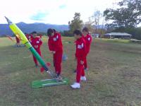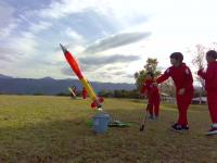 センターの先生から、ロケットの安全な飛ばし方を教わってから、グループごとに協力していざスタート!