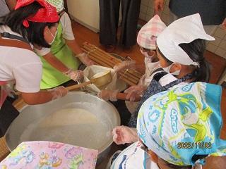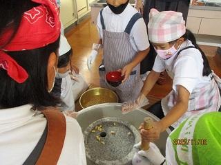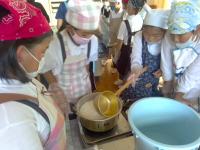 3・4年生が、春から学級園で育てた大豆を使って、豆腐作りをしました。