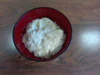 まず、昨日から水に浸しておいた大豆を、石臼ですりつぶしました。