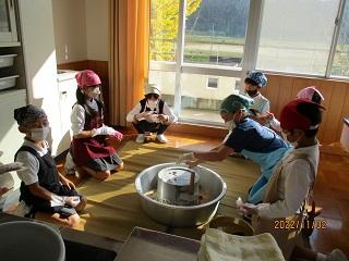 「豆腐の匂いしてきた!」「いい香り!」と子どもたちが口々に言い始め、