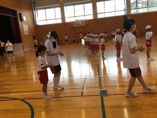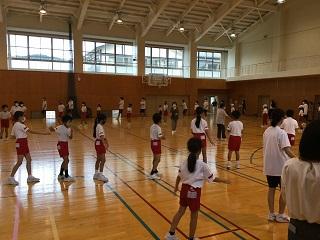 中学生の輪に小学生も入って、踊りの先生の真似をして踊ってみるけど、なかなか動きがわからない・・・