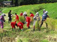 5・6年生は、古代米の稲刈り体験に挑戦しました。