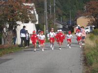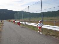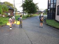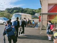 町野地区と南志見地区に分かれて集まり、集団登校を行いました。