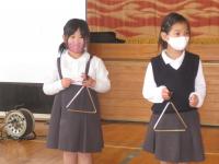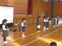 全校児童の前で披露する経験が少ない1年生は、見ていて緊張感が伝わってきました。ですが、それぞれが出せる精いっぱいの力を出して、最後まで演奏することができました。