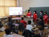 「冬休みのきまり」を守る意識をより高めるため、5・6年生が他の学年の教室へ「冬休みの決まり」を説明しに行きました。