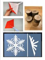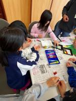 クラフトは、ピコピコカプセル・折り紙やビニールの凧・雪の結晶の切り紙・吹きゴマ・木の枝磨きです。興味のあるものから次々と体験して楽しみました。