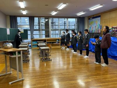 姿勢よく立つことや礼の仕方などを確認したりしています。