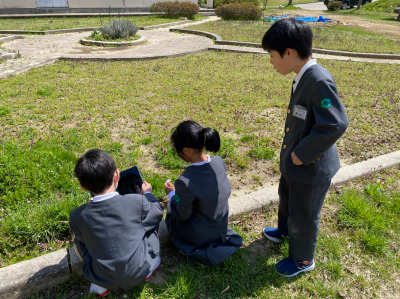 初めての理科では「春の生き物探し」を行いました。