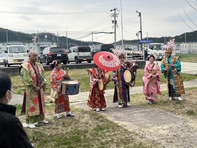 このあと、もとやスーパーまで演奏していくとのことでした。楽しい演奏でメッセージを伝えたり、町を盛り上げたりするのがお仕事だそうで、町野の町を応援に来てくださいました。こんなふうに今もたくさんの方が能登を応援したいという気持ちを持ってくださっていることに励まされますね。
