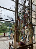 地域の方からいただいた竹に、全校みんなで飾りつけをしました。