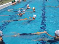 平泳ぎ、クロールなどの練習をしたり、個人のレベルに合わせて進む練習をしました。