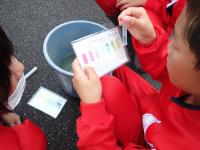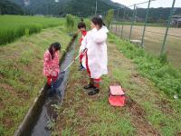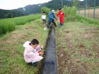 まず、水質調査をした後、用水の中の生き物を捕まえに行きました。