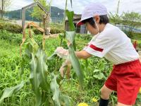 暑い中、雑草いっぱいの中、トウモロコシもナスもミニトマトも元気でした!