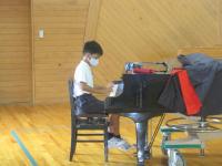終業式では、6年生の伴奏に合わせて校歌を歌いました。