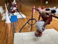 逆さになって足かけて、手を放して「こうもり」! 「こうもり手つきおり」ができる子もいました。