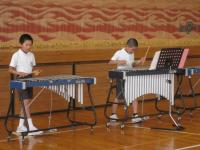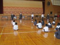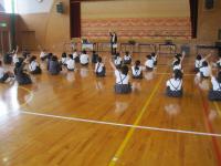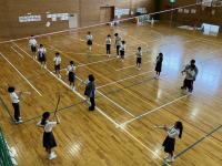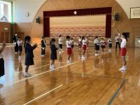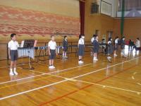 トランペット鼓隊のパート練習後、体育館で合同練習をしました。