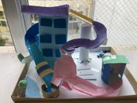 4年生「コロコロガーレ」ビー玉が転がるようなコースを作りました。