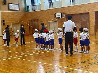 赤団・青団の団長のリードのもと、はじめは小さかった声もだんだん大きくなっていきました!