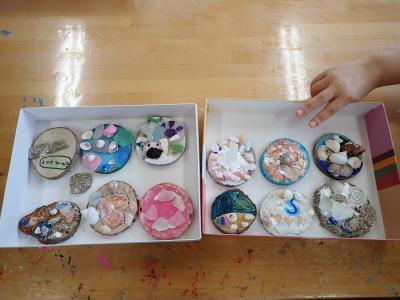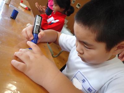 色、形、大きさ、様々な貝殻を使って、楽しく活動しました。