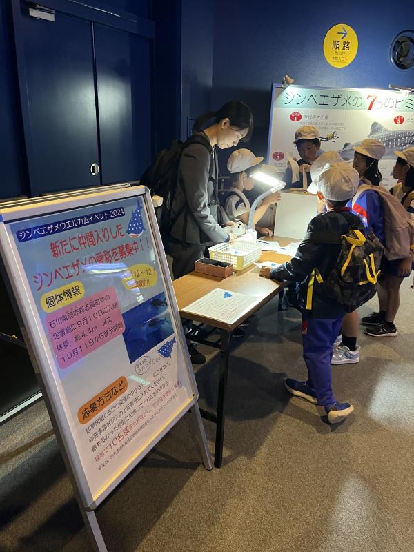 新しくやってきたジンベエザメの名前を公募していたので、みんな思い思いに投票していました。