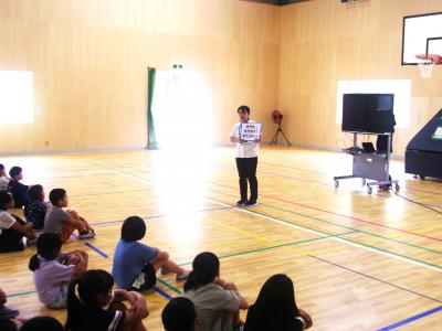 今日は1学期最後の日でした。大掃除や町別児童会のあと、4時間目に1学期の終業式を行いました。