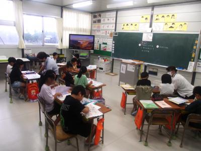 ☆2・3年生は、夏休みのワークを頑張っていました。家で学習してわからなかったところは、先生にしっかりと聞いていました!