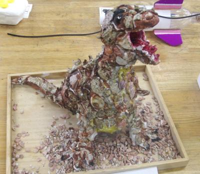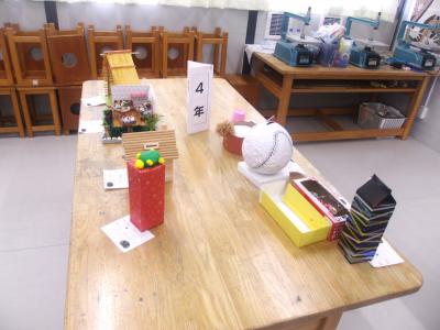 ☆図工室の工作作品の机です。4年生の机には、すでに大作が並び始めていました。すごい作品です!がんばりましたね!
