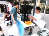 ☆能登半島をめぐるかき氷キャラバンの飯塚 氏、たくさんの子どもたちが並んでいます。おいしいかき氷をありがとうございました。