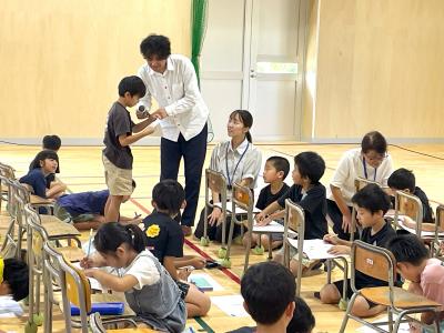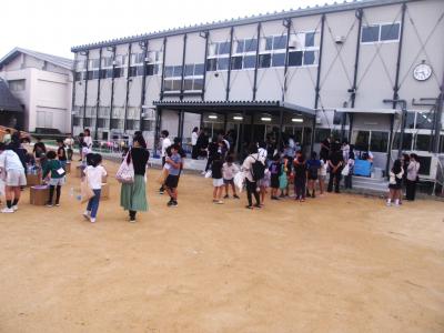 9月28日(土)に松波小学校PTA役員(なかよし学校実行委員会)が中心となって準備してきた、「なかよし学校 子ども縁日」が開催されました。この企画は、毎年のと少年自然の家を利用した宿泊を伴うなかよし学校(通学合宿)をPTAが主体となって行ってきたのですが、地震の影響で施設が使えないことを受けて、子どもたちのために何かをしてあげたいというPTA役員さんの強い思いから、形を変えての実施となりました。