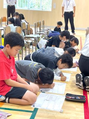 海上保安官の方から諸注意や説明をしていただき、20分間で総重量40kgのゴミを拾うことができました。その後、ゴミを種類毎に分類し、その重さを量ることで、事前学習と比較しながら、どの種類のゴミが多いのか実際に調べることができました。最後には、子どもたちの質問コーナーもあり、海上保安官の方々が丁寧に答えてくださいました。それにより新たな気づきや今後の学習につながる疑問が見つかったようです。