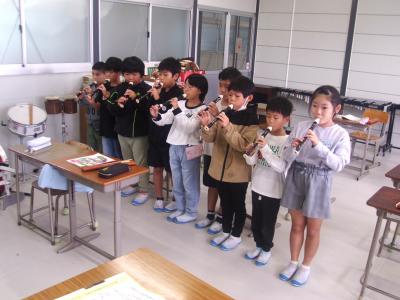 校内をまわっていると、音楽室から素敵な合奏の音が聞こえてきました。行ってみると3年生が一生懸命合奏の練習をしているところでした。「今、練習中なのであとで聞きに来てください!」と声をかけられ、しばらくして行ってみると3年生が合奏の準備をして待っていてくれました。合奏曲は、「ゆかいな木琴」でした。3年生が一生懸命頑張って演奏してくれて、とても嬉しかったです。素敵な演奏をありがとう3年生!