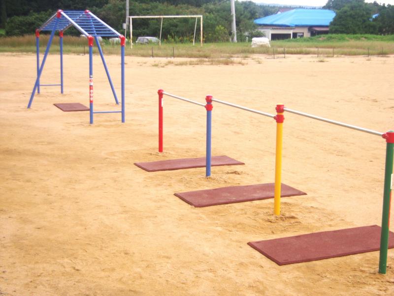 さて、昨日6年生が宿泊体験学習のため暫定的に使用をはじめた雲梯・鉄棒ですが安全マットが整備され本日正式に完成となりました。すでに、雲梯を完遂できた児童もいて、最後までできない児童は大変意欲的にチャレンジしています。ご支援いただきました皆様、本当にありがとうございました!