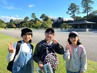 さきほど、本日2回目の宿泊体験学習の写真が届きました。兼六園・金沢城・21世紀美術館・しいのき迎賓館を活動班で散策したあとの児童の様子です。活動班の写真とクラス写真です。この後、全員元気に宿舎に入り、夕食まで現在待機しているようです。