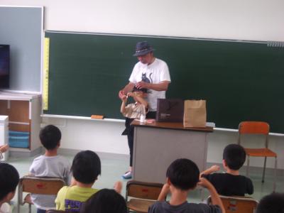 6月5日(水)です。今日は、5限目に1~3年生に向けて、マジックショーが開かれました。マジックをしていただいたのは、愛知県岡崎市在住のマジックボランティアの中野様です。能登町の小学校でマジックを順番に披露しているそうです。なぞなぞから始まり、マジックショーに入りました。趣味でのマジックなので時には失敗しそうな場面もありましたが、素晴らしいマジックで子どもたちも大喜びでした。最後には、簡単にできるマジック教室も開かれ、子どもたちも一生懸命マジックを練習していました。とても楽しい時間を過ごすことができました。中野様ありがとうございました。