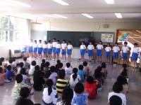 プール開きも行われました。今年は、松波小のプールが被災し使えない状態です。水泳の時間を確保するため、小木小学校のプールに行って水泳の授業を行うことになり、今日プール開きとなったわけです。学校長のお話のあと、体育担当からきまり・注意などのお話がありました。ルールを守り、楽しい水泳学習になるといいですね。