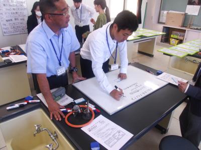 ホワイトボード・ミーティングⓇ認定講師 横山弘美先生のご指導でファシリテーションの技術について学びました。小中の教員が同じグループになり与えられた課題について話し合っていきます。研修を通してファシリテーションの技術だけでなく、小中学校教職員の相互理解ができたことが大きな収穫でした。終始和やかな雰囲気で行われ、とても有意義な研修会となりました。横山先生、岡本校長先生ありがとうございました。