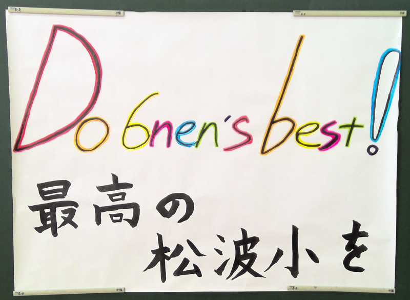 6年生の学級目標の掲示物が完成しました!6年生の学級目標は「Do 6nen's best ~最高の松波小を~」です。この学級目標のように、6年生全員が全力を出し切り、最高の松波小学校を築き上げていけたらと思います。