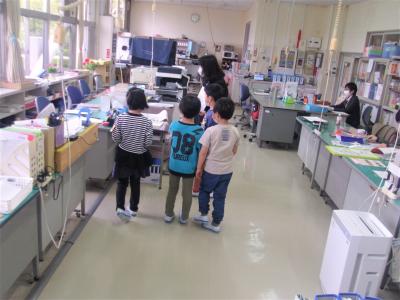 4月19日(水)に1年生が職員室探検に来てくれました。密にならないように、4人ずつ職員室に入りました。いろいろな発見があったようです。