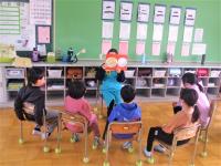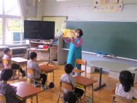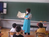 4月24日(月)今日の朝タイムの時間に読み聞かせグループ「ひまわり」の皆様による読み聞かせの会がありました。全学年に分かれて実施をしていただきました。1年生にとっては、初めての読み聞かせでした。とても元気の良いあいさつからのスタートとなりました。紙芝居を読んでいただき、まさに目が釘付けです。抑揚のある素敵な読み聞かせに心を奪われているようでした。
