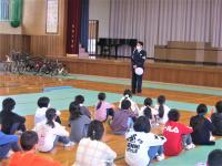 4月25日(火)5限目に交通安全教室が開かれました。交通安全教室は、珠洲警察署、能登町交通安全協会松波支部、PTA環境委員会の皆様のご協力で行いました。