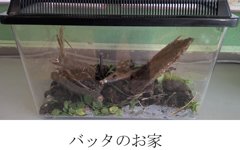 先日捕まえてきた虫のうち、コオロギ2匹とバッタ1匹、なめくじ1匹をしばらく飼うことになりました!今日の生活科では、虫の飼い方の本を調べ、草や木の枝などを入れて虫達のお家を整えました♪