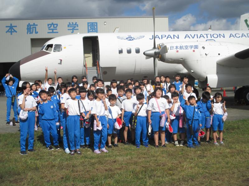 1~5年生で遠足に行きました。まず、日本航空高等学校石川に行き、ドローンの操作や飛行機の見学をしました。次に、石川県健康の森に行き、レクリエーションをした後、昼食を食べ自由時間を過ごしました。