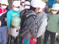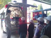能登消防署内浦分署のご厚意により、消防署内の見学へ行きました。社会科の時間で学習している内容の学びを深める、貴重な時間を過ごすことができました施設内の見学だけでなく、消防車や救急車の中も詳しく解説していただきながら見せていただき、子どもたちは大興奮でした