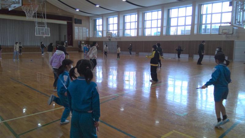 縦割り班ごとに,8の字とびや個人練習に取り組みました。