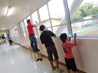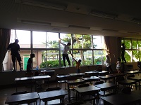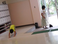 朝の掃除では,みんな集中して学校をきれいにしていました。