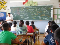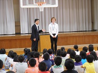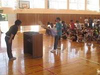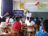 さっそく4・5・6年生は楽しそうにトムと授業を行っていました。